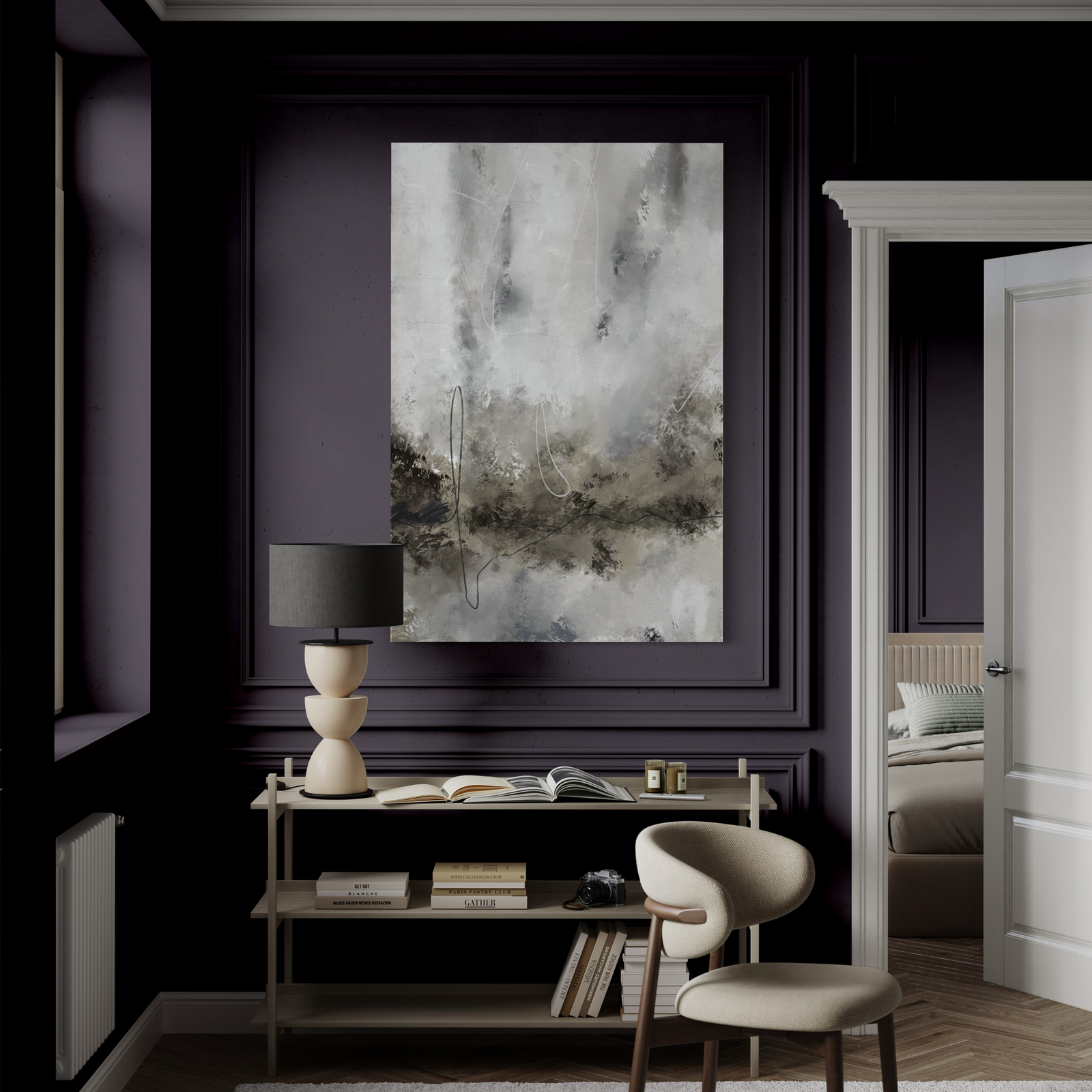 Minimalist abstract expressionism with gray tones and expressive textures